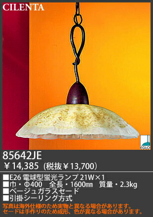 【ポイント2倍キャンペーン中】送料無料!EGLO CILENTA シレンタ ペンダントライト ベージュガラスセード 85642JE【P0429】【donpa0508_frshipg】
